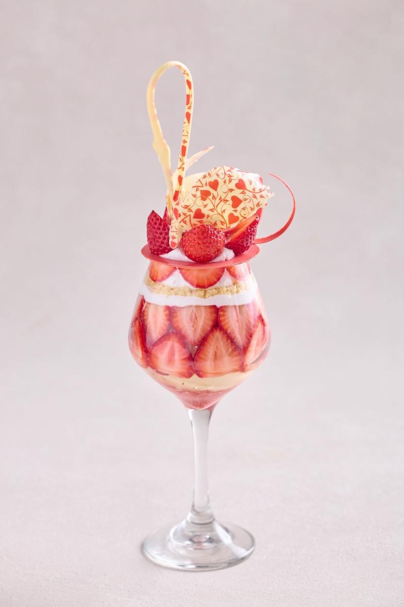 浦安ブライトンホテル東京ベイ(浦安市美浜1)1階のロビーラウンジ「シルフ」が提供している「スワンパフェ あまおう苺(いちご)」の提供期間が4月30日まで延期される。