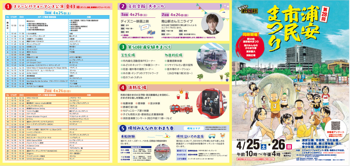 「第28回浦安市民まつり」が4月25日・26日、浦安公園、文化会館(以上、浦安市猫実1)、境川周辺で開催される。
