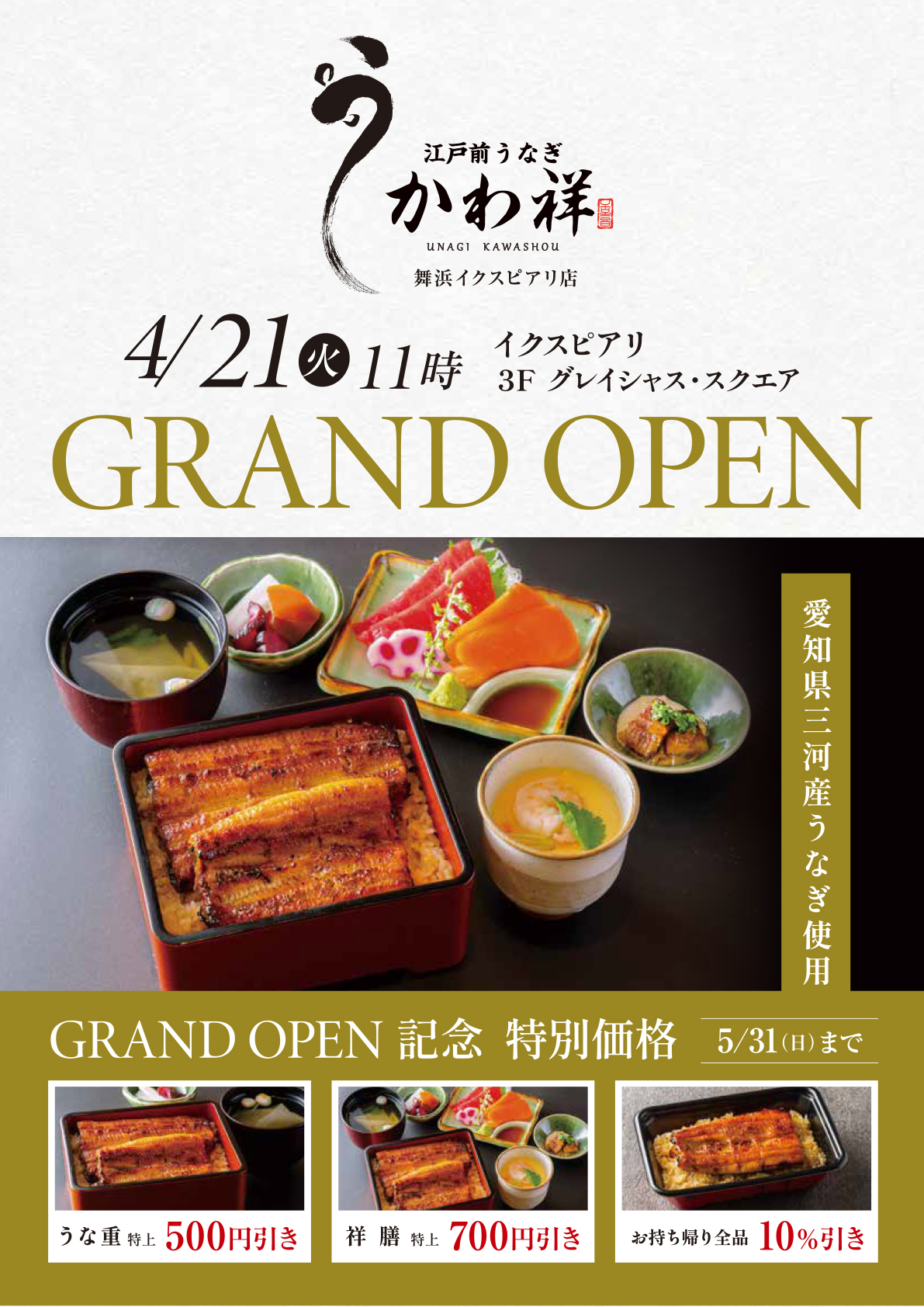 イクスピアリ「江戸前うなぎ かわ祥」オープンチラシ