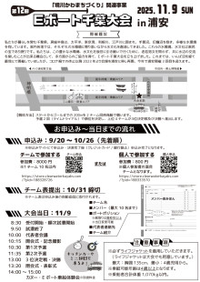「第12回 Eボート千葉大会 in 浦安」が11月9日、境川のしおかぜ歩道周辺(浦安市美浜1)でに開催される。