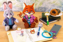 カラフルなバルーンを持ったジュディとニックのぬいぐるみバッジ、振るとゆらゆら動くキャラクターのマスコットが付いたボールペンや、手を動かしてペンを持たせたりすることができるぬいぐるみのようなペンケース、ヘビのゲイリーがハンドストラップになっているスマートフォンアクセサリーなど、学校やオフィスでも使えるグッズも揃っている。