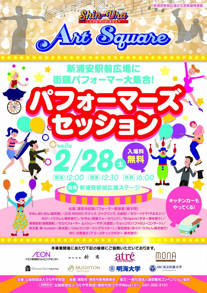 新浦安駅前広場ステージで 2月28日、「パフォーマーズセッション」が開催される。主催はうらやす財団。