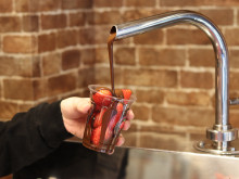同店では、今回イタリアから輸入した専用機械チョコレートウォーマーを導入した。「口に入れるとチョコがとろける滑らかな食感と、光沢感のある見た目を実現した」という。チョコは、パティスリーが愛用する「クーベルチュールチョコ」を使用し、イチゴとの相性にこだわった。