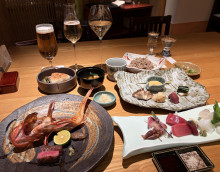 原始焼きのコースとして「季焔(きえん)」(1万円)。「季布やの八撰」で始まる一串、炙(あぶ)り鯖(さば)寿司(ずし)、蒸し鮑(あわび)海苔(のり)餡(あん)掛け、野菜のお浸し、フルーツとまと、大和芋と本まぐろのあえ物、本日の2品、「炭火焼」新潟県産八色椎茸(しいたけ)、冬のお野菜、造り=お造り盛り合わせ七種盛り、原始焼き=きんきの塩焼き、和牛サーロイン、炭火で焼いたおにぎり・味噌(みそ)汁」または「鰯(いわし)、椎茸、昆布、さば、かつお五種の出汁(だし)を使用した信州八割そば」「デザート」。