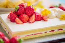 スイーツは、プレミアムショートケーキ 苺と和三盆クリーム、柚子(ゆず)と苺のグラニテ、ひよこプリンなどをそろえている。
