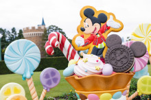 エントランス前にはキャンディーをイメージしたミッキー花壇が登場するほか、ワールドバザールやシンデレラ城前プラザ、一部のレストランなどにドーナツやロリポップなどスウィーツをイメージしたデコレーションが用意されている。
