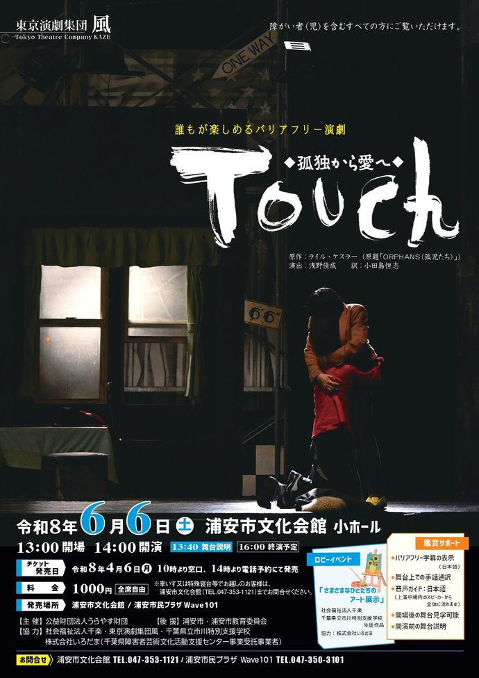 東京演劇集団風のバリアフリー演劇「Touch 孤独から愛」が6月6日、浦安市文化会館(浦安市猫実1、TEL 047-353-1121)で上演される。