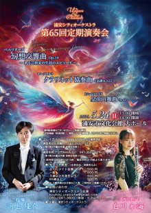 同楽団は音楽愛好家の市民有志により設立され、今回が65回目の定期演奏会となる。指揮は河上隆介さん、クラリネットは浦安ピュアクラシックコンサート登録アーティストで浦安出身、フランスで研さんを積んだ白川和海さんがソリストとして共演する。