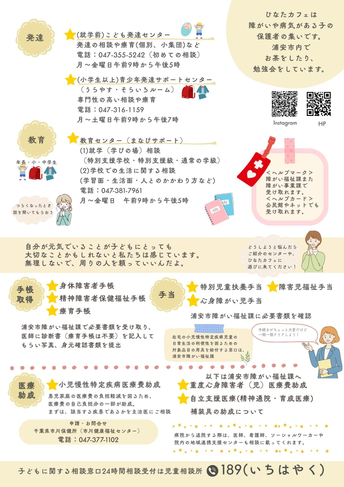 障害や病気のある子どもの保護者のつどい「ひなたカフェ」の主催者が「浦安つながる子育てマップ」を制作し、配布を始めた。