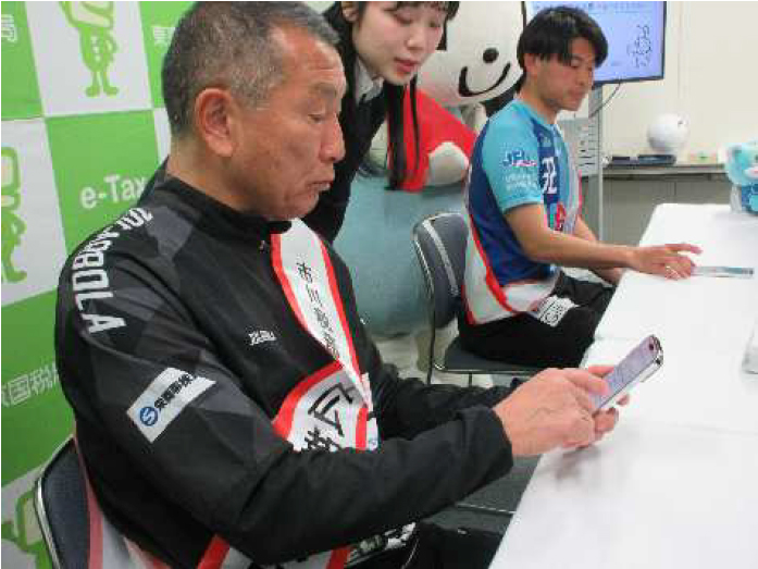 市川税務署が、「ブリオベッカ浦安・市川」の都並敏史監督と豊島朱凌選手が広報大使に就任し、マイナポータル連携を利用したスマホ申告を行なったことを、2月6日に発表した。