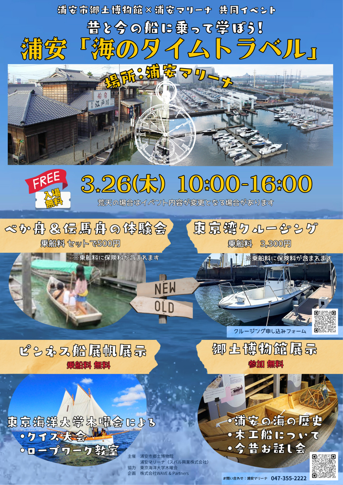 浦安マリーナ(浦安市千鳥1)で3月26日、べか舟・伝馬舟・クルージング乗船イベント「浦安 海のタイムトラベル」が開催される。